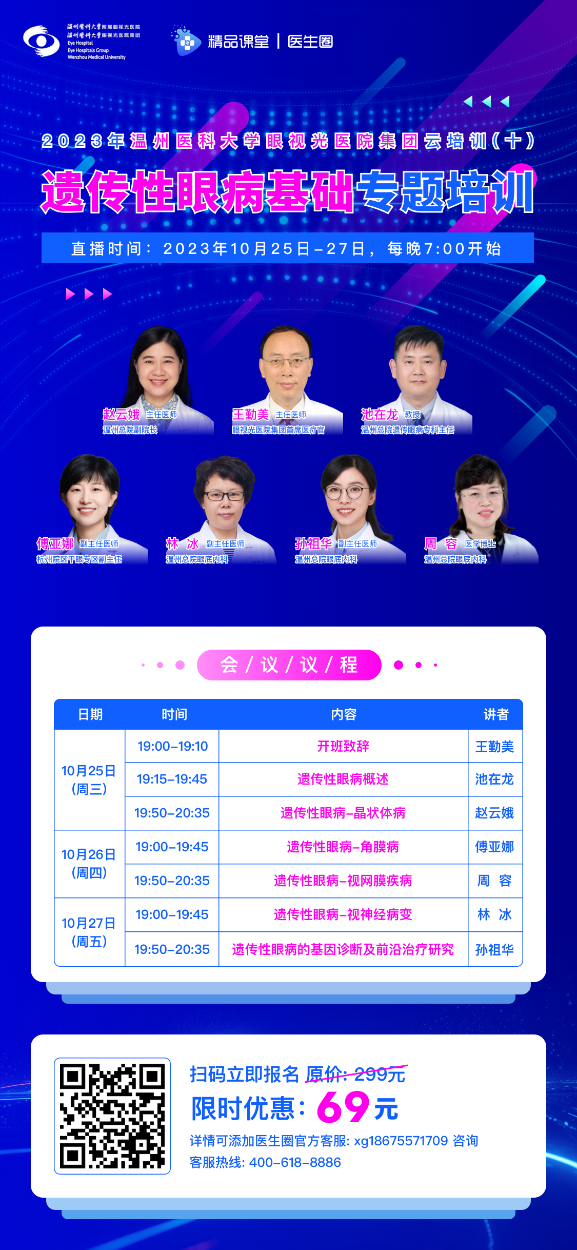 為進一步規(guī)范遺傳性眼病的診療技術,溫州醫(yī)科大學眼視光醫(yī)院集團首席醫(yī)療官王勤美教授,攜手資深講師團,為大家?guī)?天6課時的“遺傳性眼病基礎”專題系列培訓課程。授課內容豐富,實用性強,探討和解決臨床的實際問題。