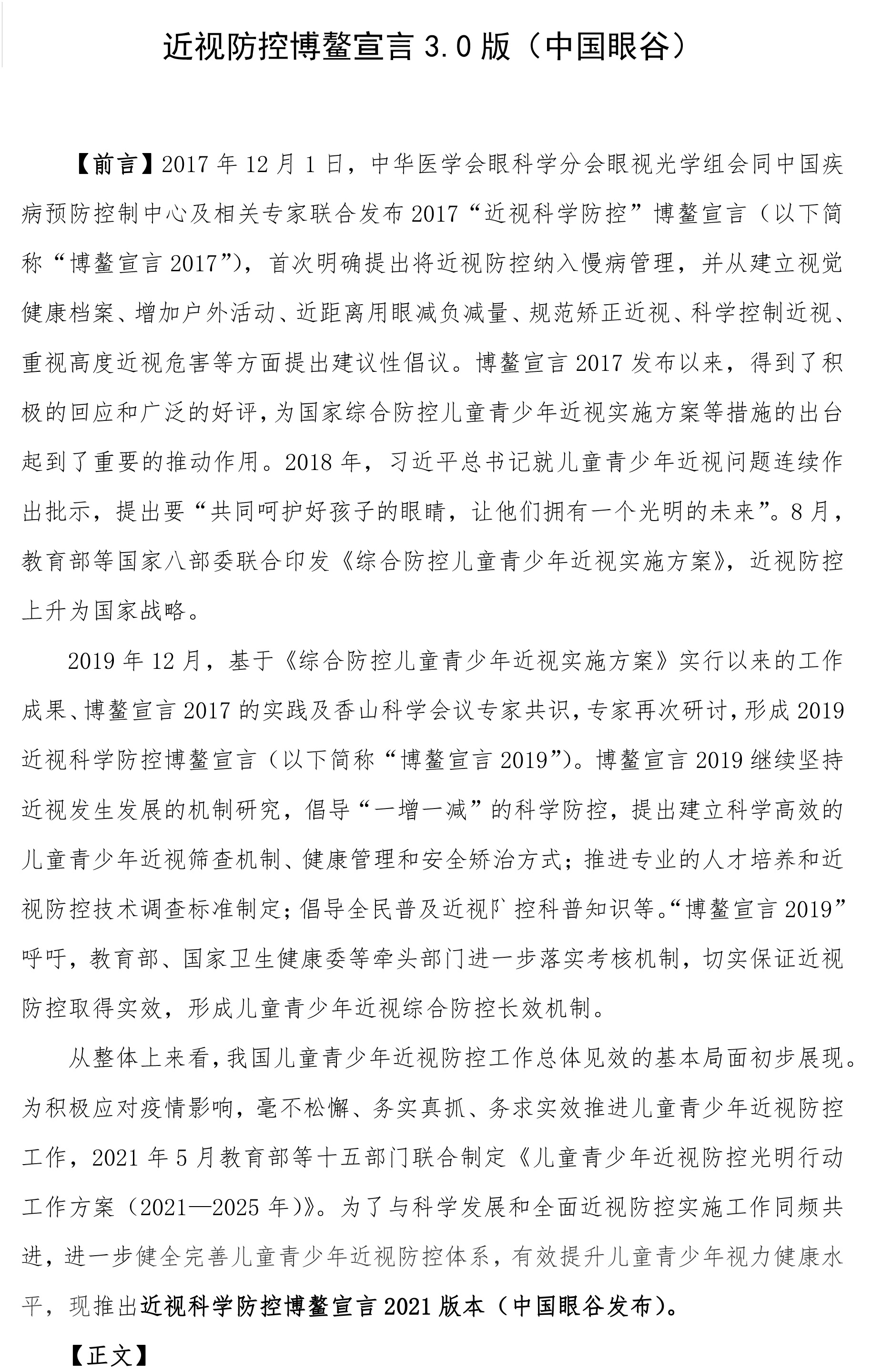 博鰲宣言自2017發(fā)布以來,一直強(qiáng)調(diào)近視防控科學(xué)研究和有效舉措,獲得了相應(yīng)和有效的推廣應(yīng)用。此次新版本結(jié)合近幾年全國近視防控工作進(jìn)展現(xiàn)狀,在2019年升級版的基礎(chǔ)上進(jìn)一步優(yōu)化,更注重近視防控布局上的全面性、防控舉措的科學(xué)性,使防控工作更有針對性、科學(xué)性、長效性。