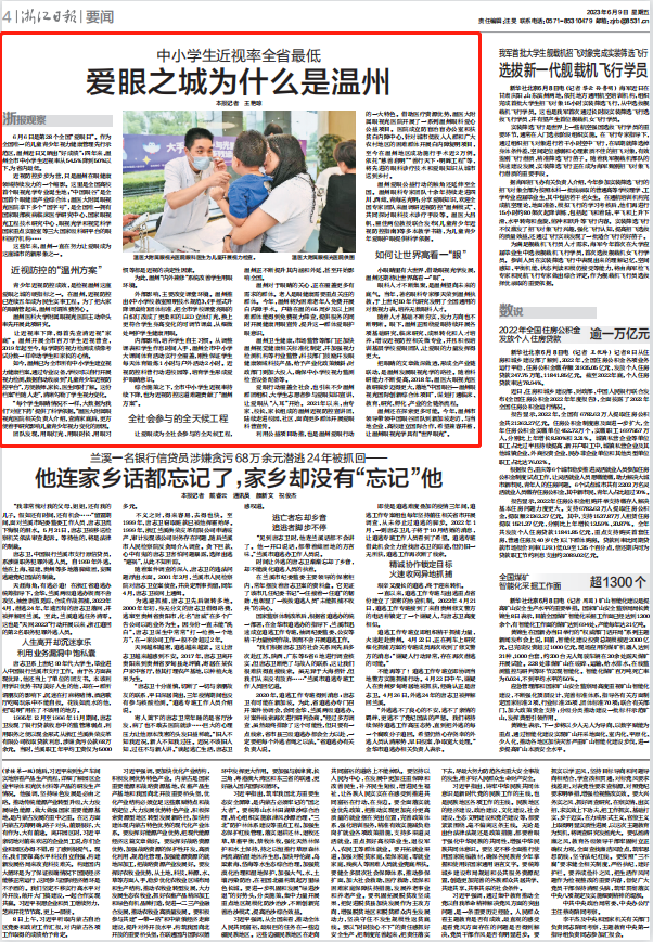 青少年的視力事關(guān)國(guó)家和民族的未來(lái)。2018年起,近視防控上升為國(guó)家戰(zhàn)略。而在溫州,近視防控已連續(xù)五年成為溫州的民生實(shí)事工程。